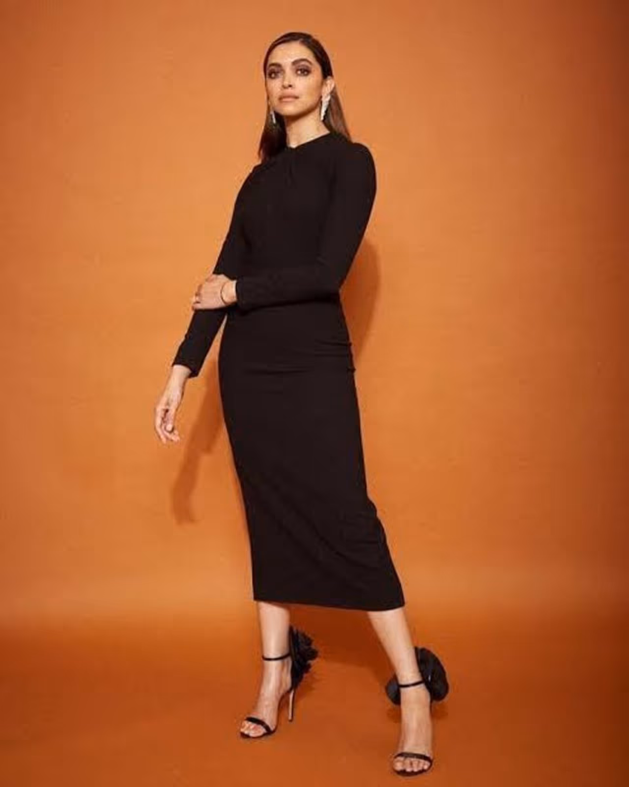 Deepika Padukone's bodycon black dress is super elegant and sexy. She completed her look with black heels, smokey eyes and nude lips.