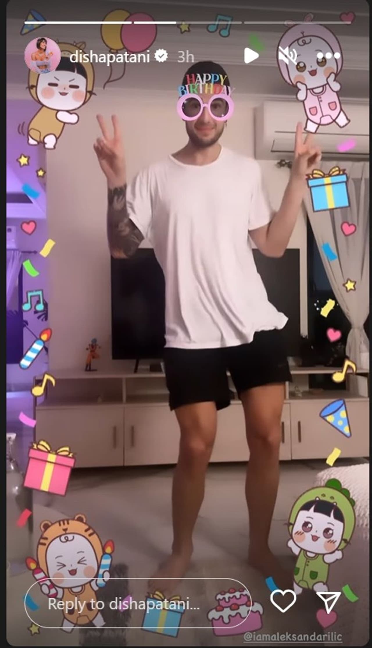 As Aleksandar Alex Ilic celebrates his birthday today, actress Disha Patani shares a cute video of him dancing and she put a happy birthday sticker on his head as a crown, as well as numerous other birthday filters.