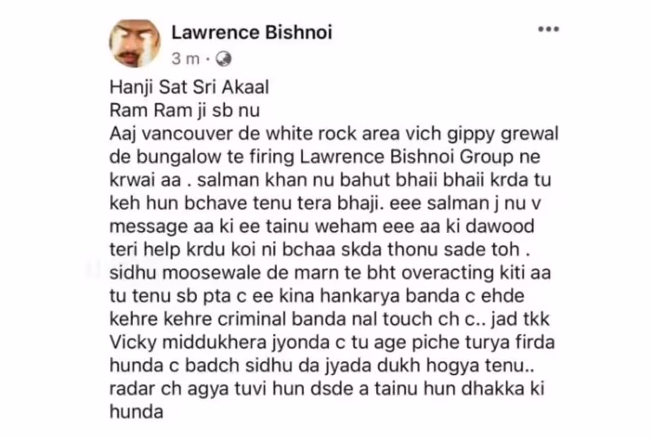 On November 26, Lawrence Bishnoi addressed singer Gippy Grewal on a Facebook note and wrote, “You consider Salman Khan a brother, but now it’s time for your ‘brother’ to come and save you. This message is also for Salman Khan – don’t be in the illusion that Dawood will save you; no one can save you. Your dramatic response to Sidhu Moose Wala’s death did not go unnoticed. We all know the kind of person he was and the criminal associations he had You’ve now landed on our radar. Consider this a trailer; the full film will be released soon. Flee to any country you wish, but remember, death doesn’t require a visa; it comes uninvited (sic).”