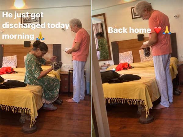 “Back home," Shah's son Vivaan captioned the picture of his father and mother, actor Ratna Pathak Shah on his Instagram Story.