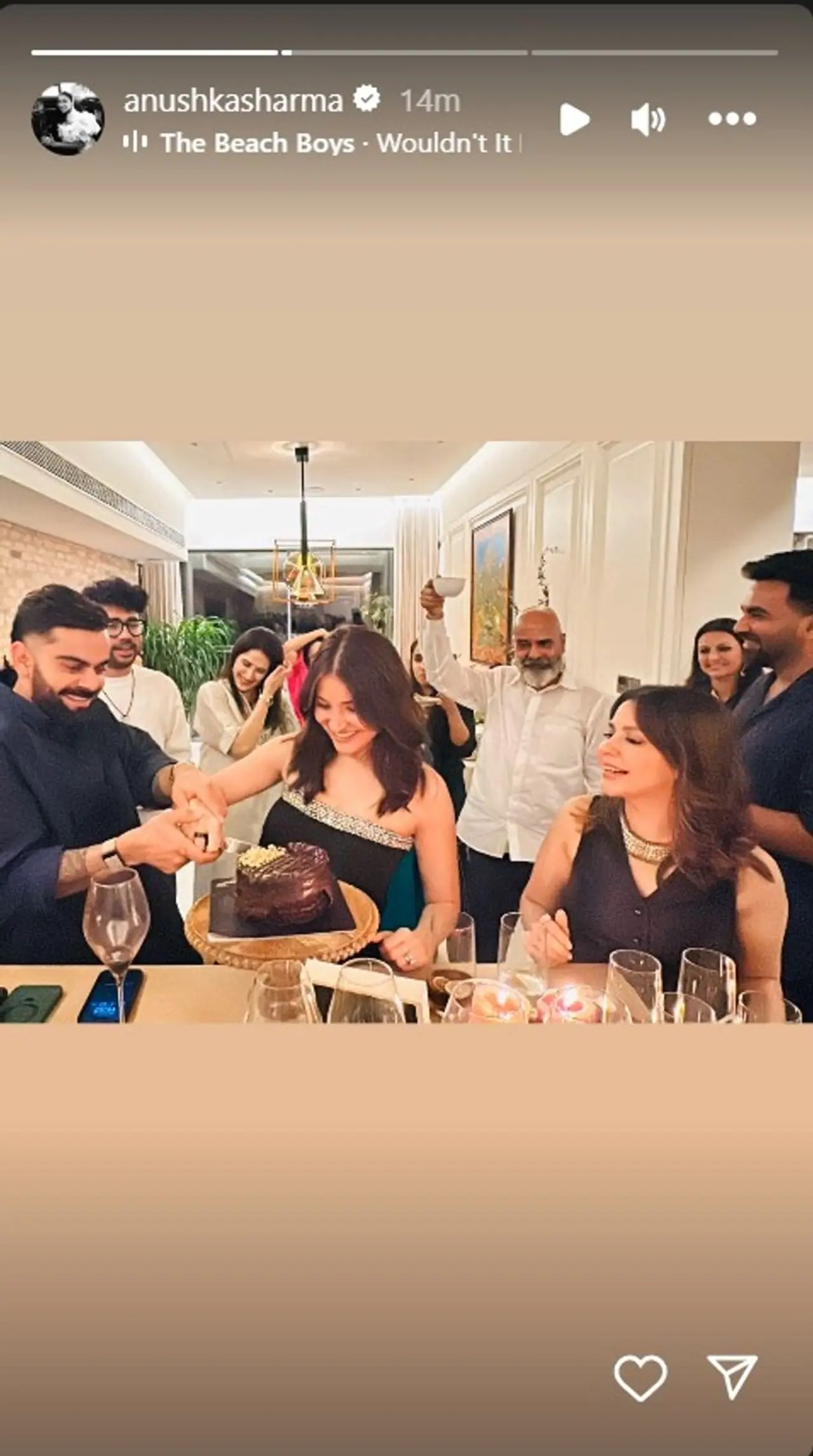 Anushka Sharma finally posted something to commemorate her and Virat Kohli's sixth wedding anniversary. The actress came to Instagram a day after their wedding anniversary to share a photo from what appears to be their anniversary party. Anushka, who is rumored to be expecting her and Virat's second child, was dressed elegantly in a black gown, while Virat looked dapper in a black formal suit. As they posed for a picture, the actress was seen wrapping her arms around Virat.