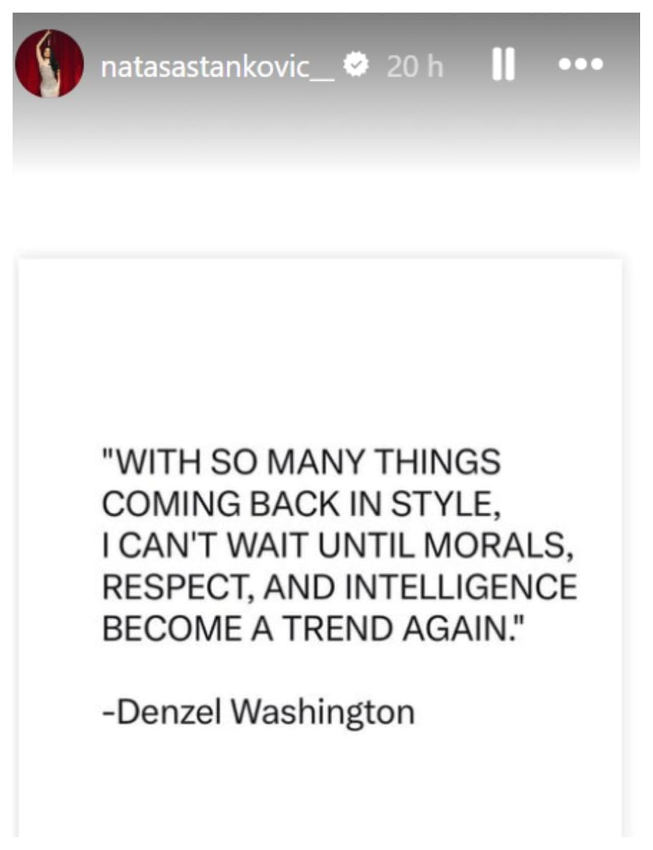 Natasa Stankovic has stirred speculation about her relationship with cricketer Hardik Pandya by sharing a cryptic post on her Instagram story amid ongoing separation rumors. On Thursday, Natasa posted a quote by actor Denzel Washington, saying, 'With so many things coming back in style, I can’t wait until moral, respect and intelligence become a trend again.' This post has left fans wondering about the state of her marriage.