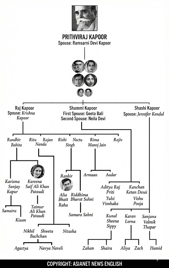 Explore the complete Kapoor family tree from Prithviraj Kapoor to the youngest generation. A detailed look at Raj, Shammi and Shashi Kapoor branches and how the dynasty shaped Bollywood’s history across five generations.