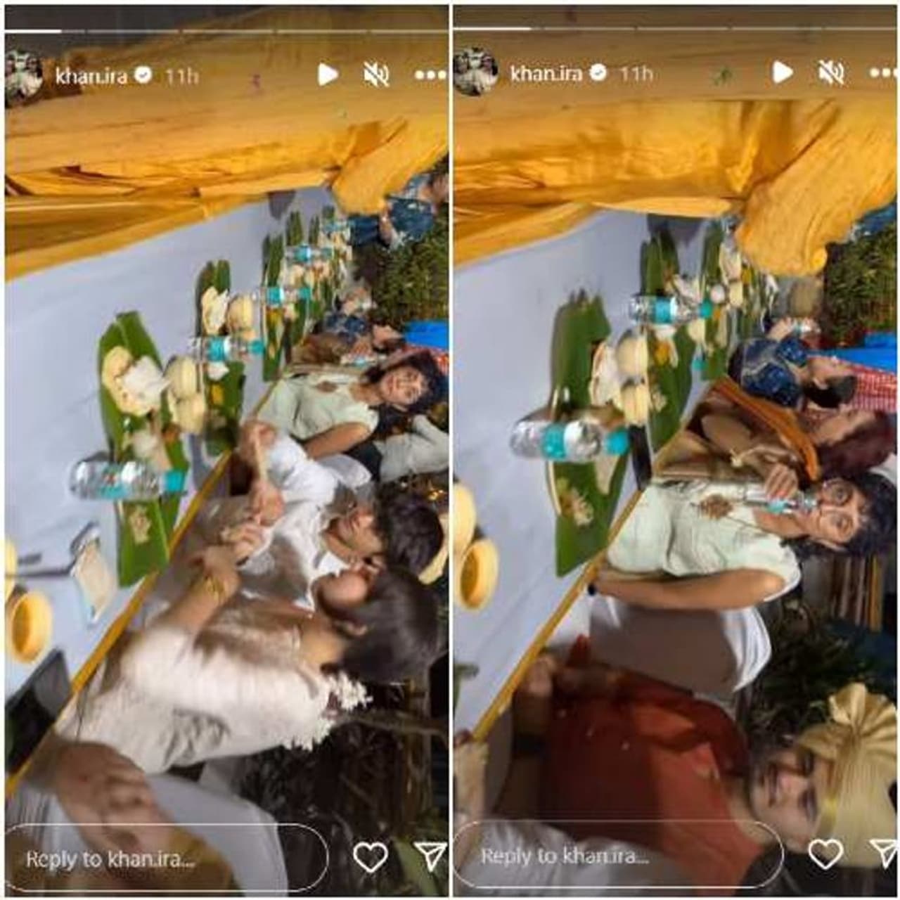 Ira Khan took to Instagram stories last night to post a video of numerous people sat around a dining table, enjoying Maharashtrian food. The video also shows Aamir Khan's ex-wife, Kiran Rao, clothed in an off-white gown. Azad Rao Khan is seated next to her.
