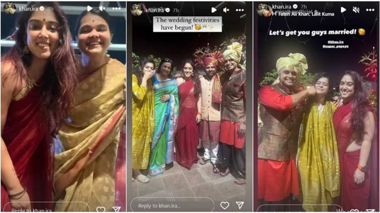 Ira Khan, the daughter of Aamir Khan and Reena Dutta, will marry her lover, Nupur Shikhare, on January 3, 2024. Last year, the pair held an engagement ceremony that their family and loved ones attended. The celebrations have finally begun, only a few days before their wedding! Ira and her friend Mithila Palkar posted some photos from the party. Kiran Rao, Aamir Khan's ex-wife, and their son Azad Rao Khan were also there.