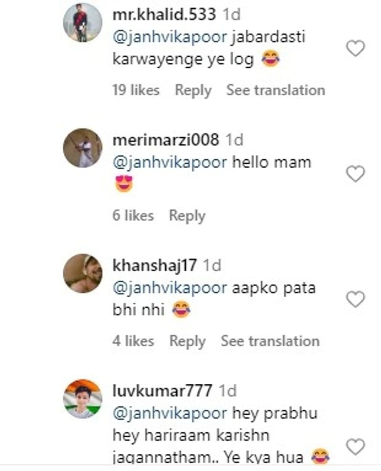 A user wrote, "@janhvikapoor aapko pata bhi nhi (You don't even know)," and added a laughing emoji. Another chimed in, "@janhvikapoor jabardasti karwayenge ye log (They will force you to get married)." Many Instagram users dropped laughing emojis in the comments section.