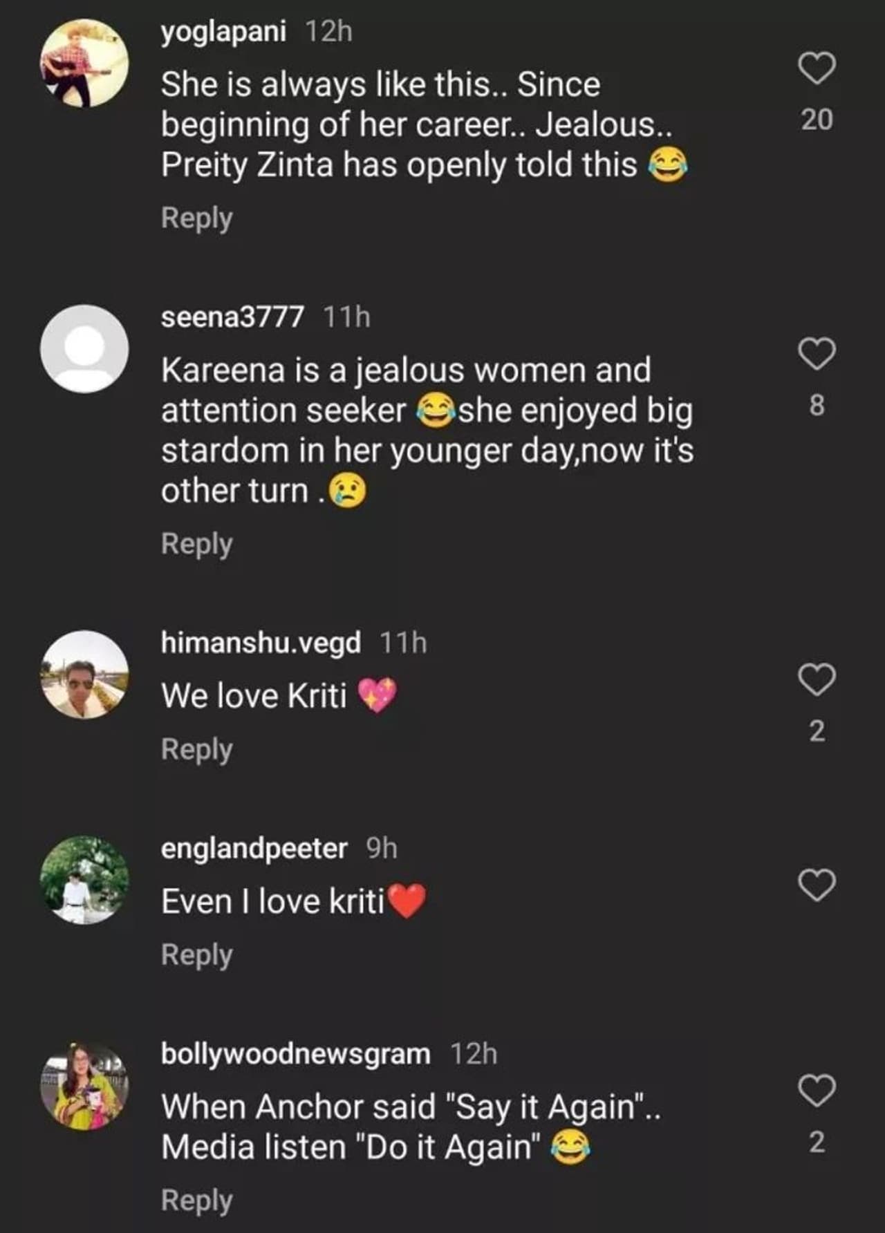An incident occurred at a promotional event for their film, 'Crew' where fans were expressing their love and cheering for Kriti Sanon, which somehow made Kareena Kapoor and Tabu feel a bit jealous, according to the netizens; check out some reactions by fans.