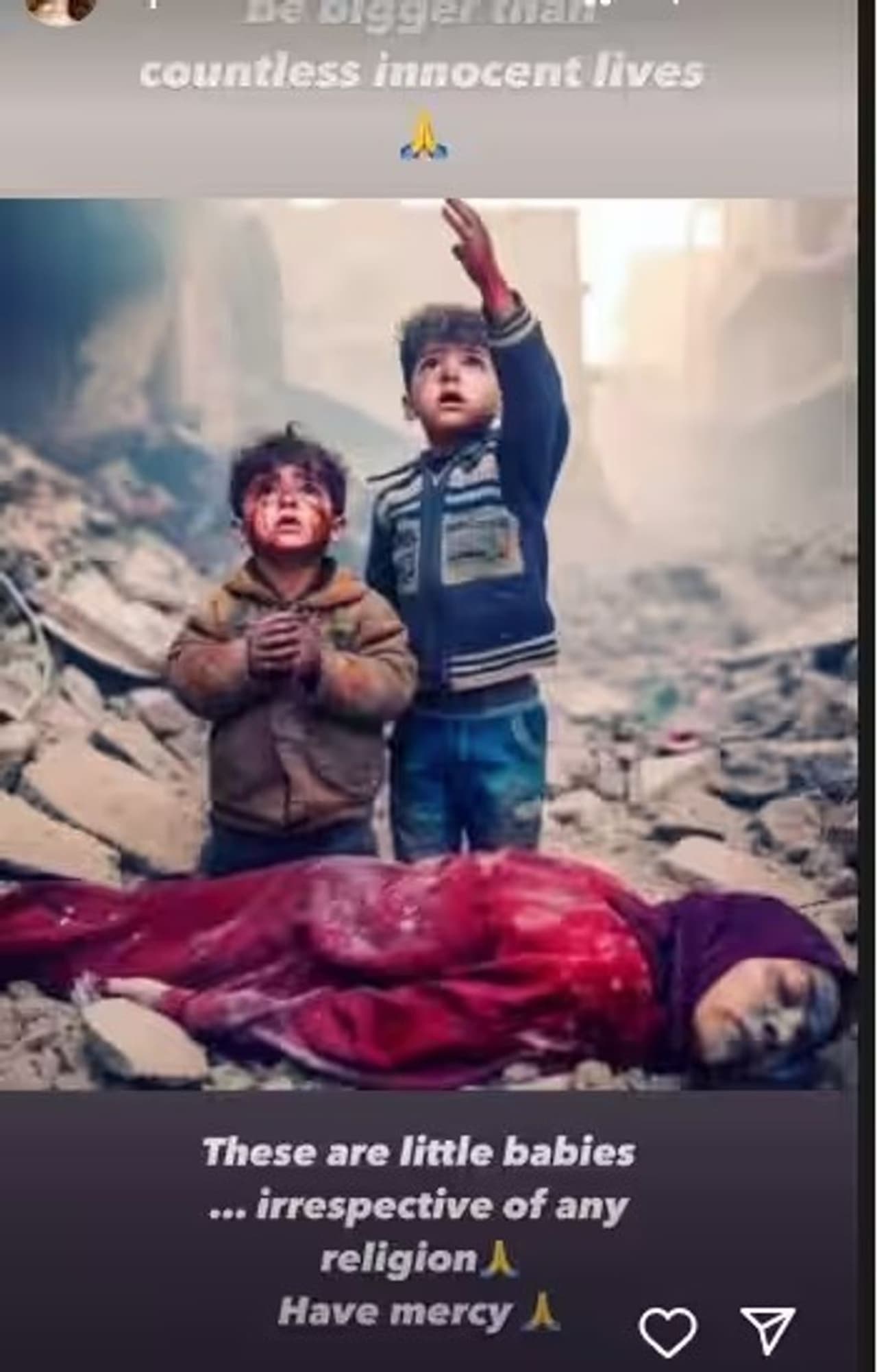 Taking to her official Instagram account, Bipasha Basu said," No war or religion can be bigger than these countless innocent lives. These are little babies, irrespective of any religion, who have mercy". The actress essentially begged for forgiveness, and the Palestinian people deserve to live in freedom. There have reportedly been more kid deaths in Gaza within the past three weeks than there were during the whole conflict in 2019.