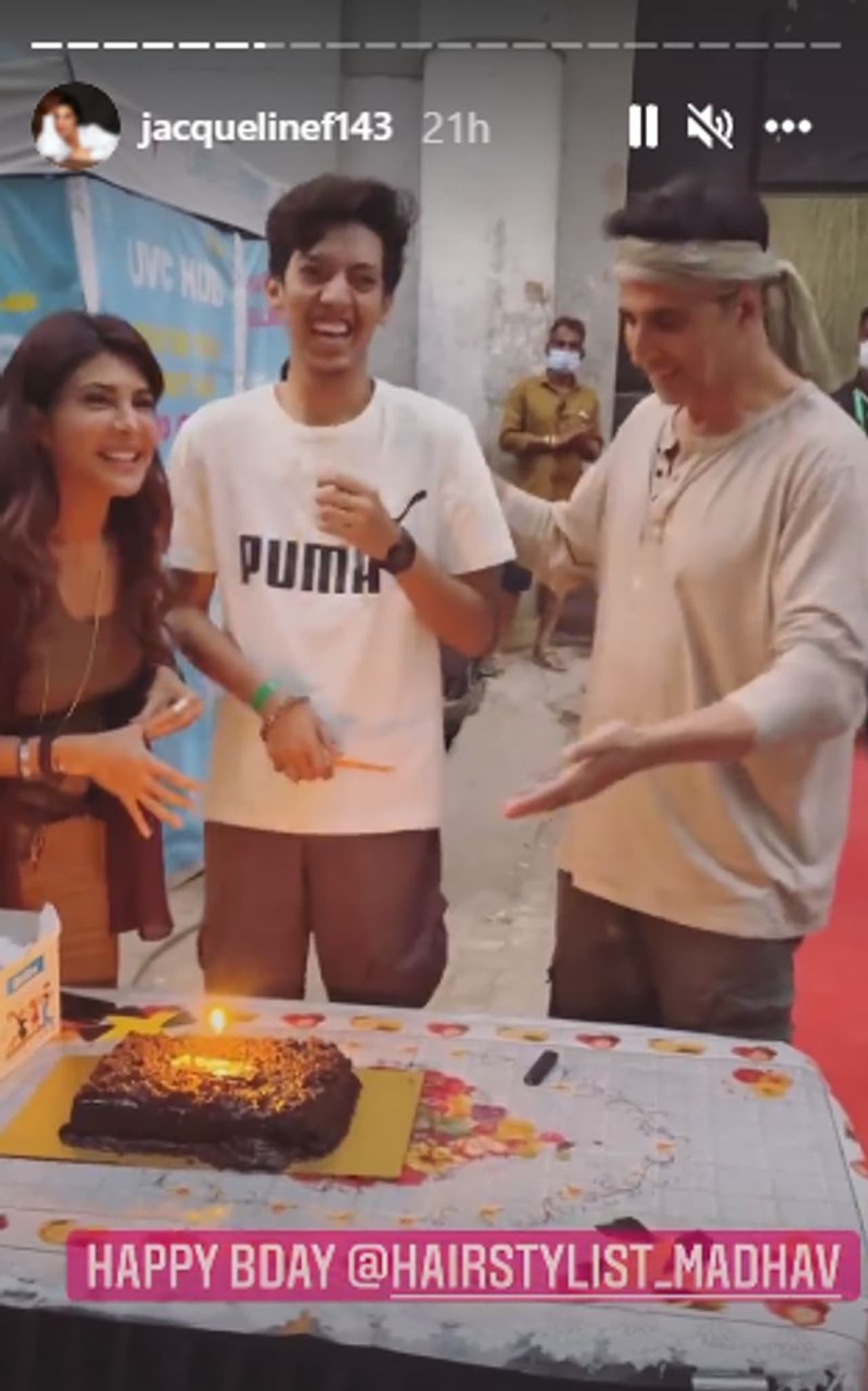 The diva took to her social media page to share a clip where the entire Ram Setu movie team was seen celebrating the birthday of her hairstylist. The actress had also made special arrangements for a get together on the sets of the film. Everyone sang the 'happy birthday song for the boy.