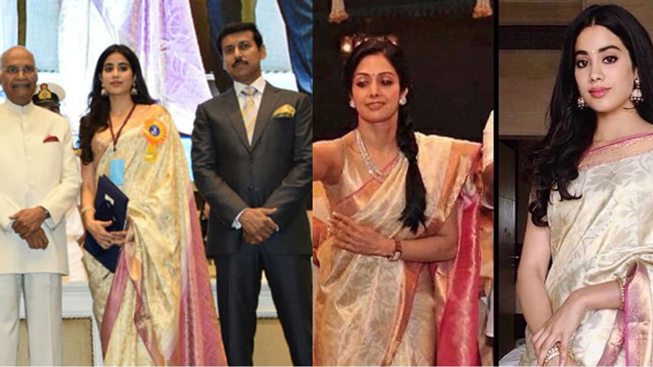 All eyes were on Janhvi, as she looked elegant in a pink and white silk Kanjeevaram saree designed by Manish Malhotra, which was originally worn by her mother, Sridevi at actor Ram Charan's wedding in 2013.