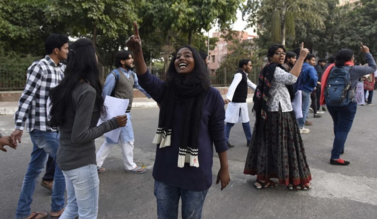 JNU students protest against new UGC norms