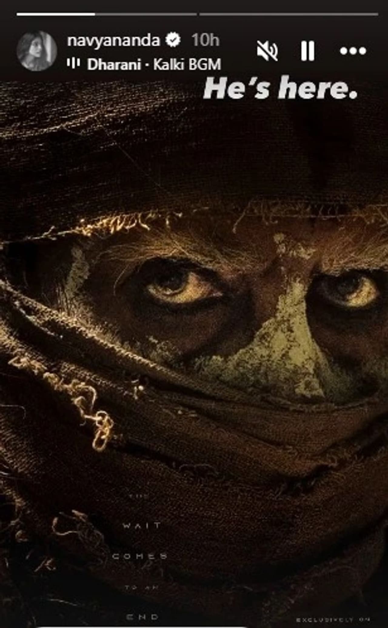 Shweta, who "cannot wait" to watch her father on-screen, wrote, "Just amazing," in the comments section of Amitabh's Instagram post. Her daughter Navya also reposted the teaser and her grandfather's look from 'Kalki 2898 AD' on social media. She captioned her post, "He's here."