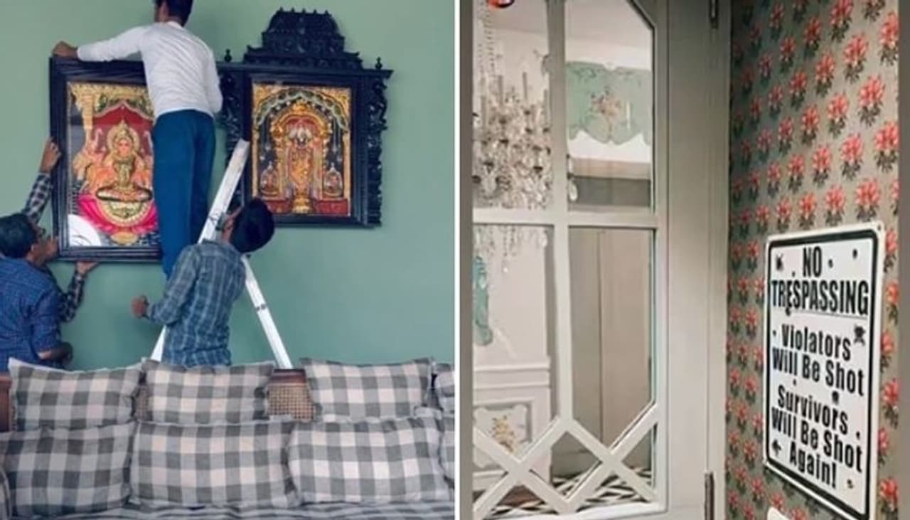 The actress, currently looking after the renovations of her Mumbai home, took to Instagram to share glimpses of a section of her home. Decorated with pretty Tanjore paintings, the signboard, 'trespassers will be shot' caught the instant attention of fans and audiences.