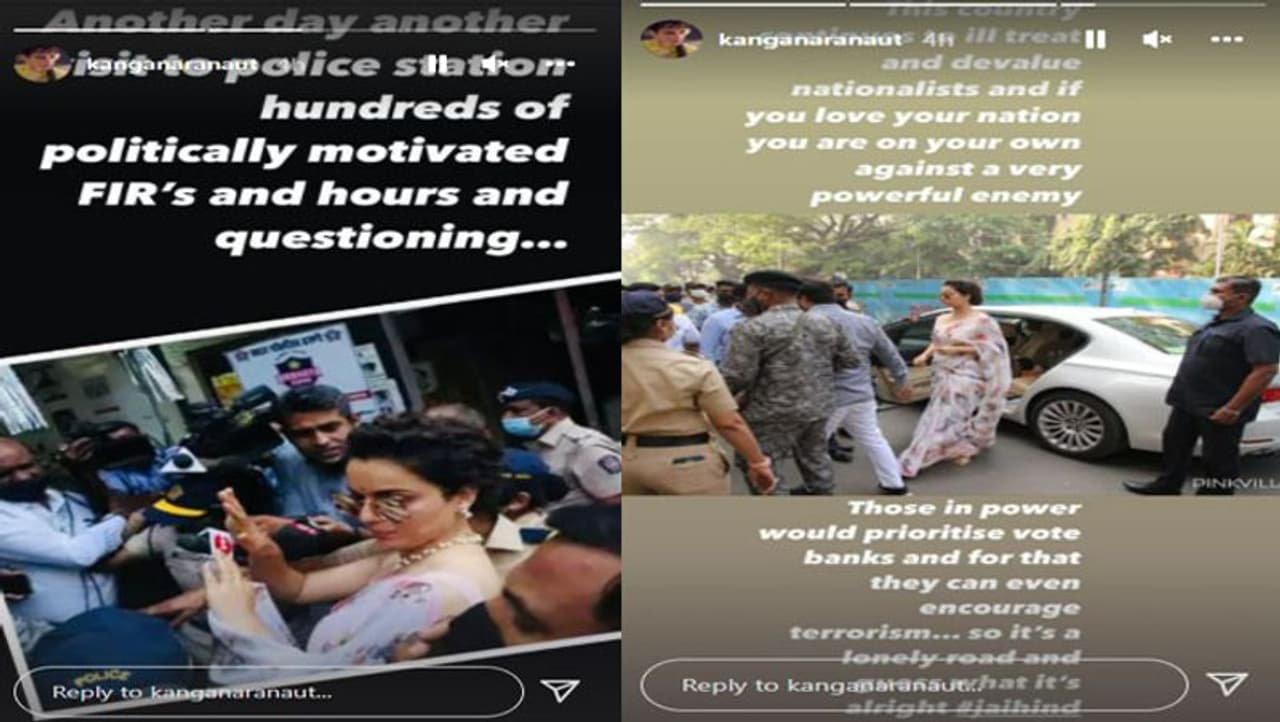 Taking to her Instagram handle, Kangana Ranaut wrote a long post in a series of stories saying that it has been another day for her in another police station because of “100 FIRs” that have been lodged against her. She said that these FIRs against her are “politically motivated” while she has to undergo hours and hours of questioning.