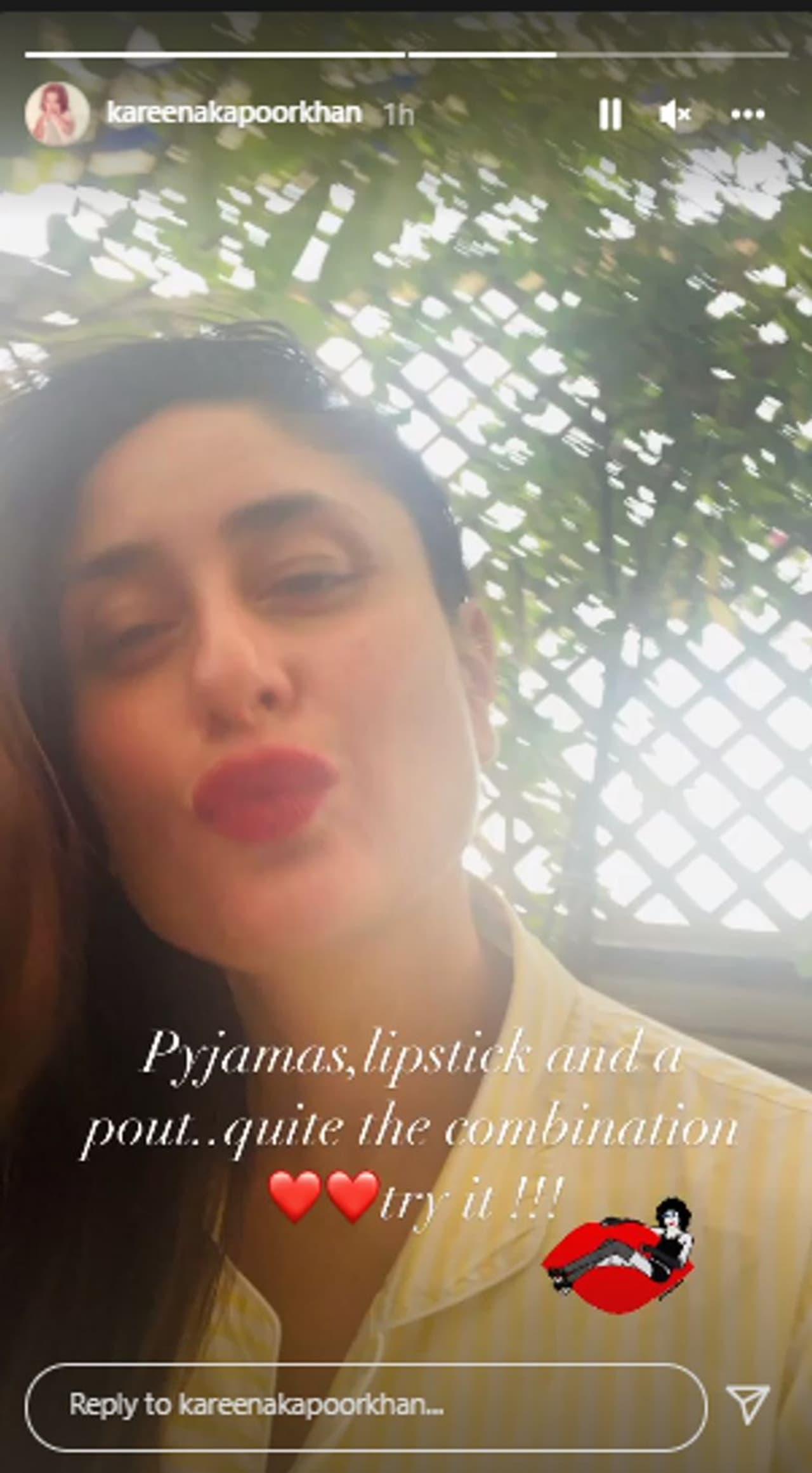 Bollywood actress Kareena Kapoor Khan has been tested COVID-19 positive. She has posted a picturefrom her day 12 quarantine period. The actress posted a cute snap in her night dress which is unmissable.