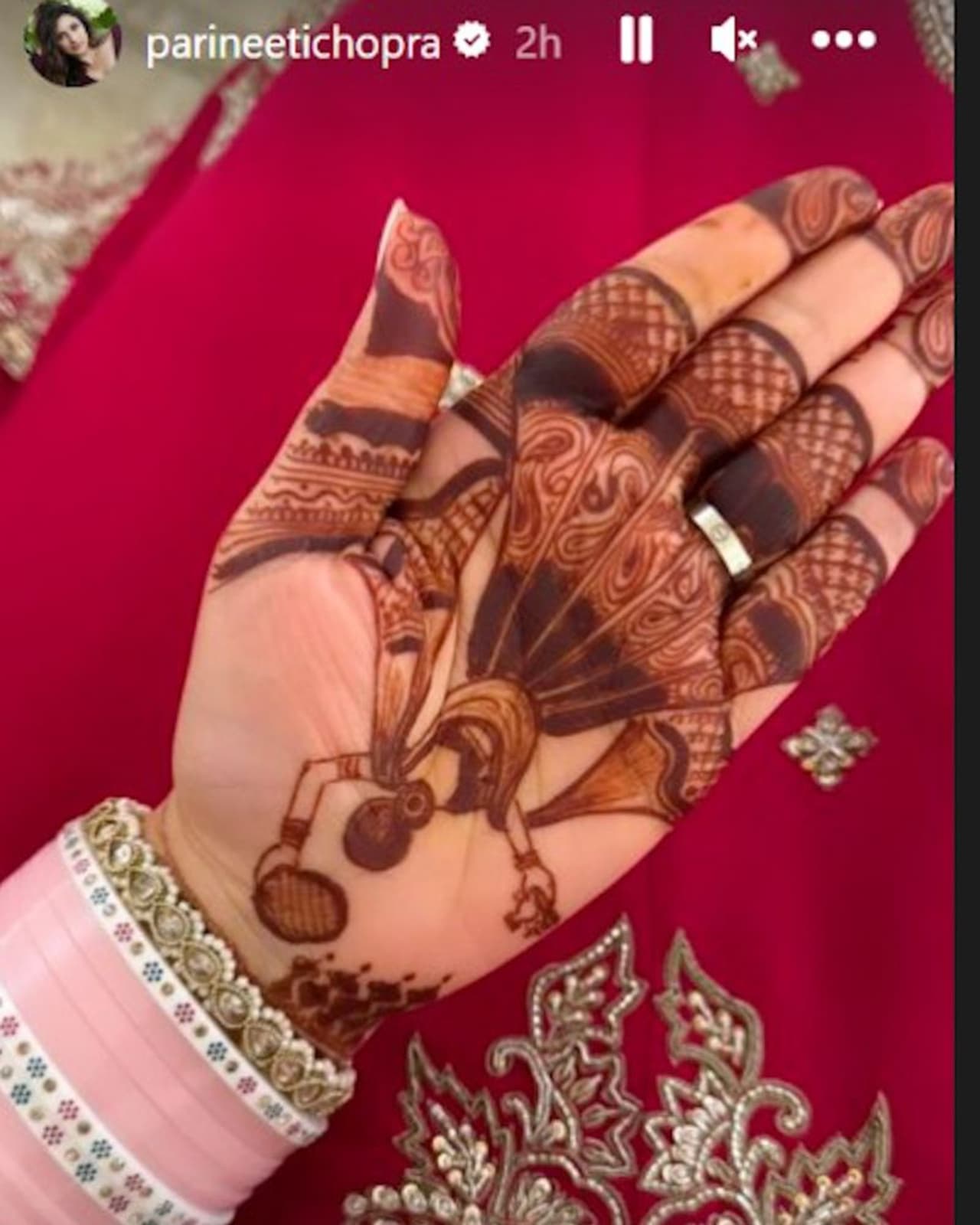 Bollywood actress Parineeti Chopra who got married to AAP politician Raghav Chaddha this September is celebrating her first Karwa Chauth. The actress shares a glimpse of her mehendi and is wearing a bridal red attire