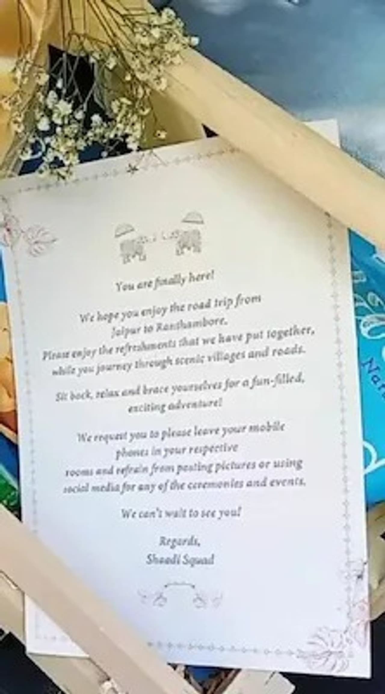 Vicky Kaushal and Katrina Kaif’s wedding guests receive treats along with a sweet letter ahead of the sangeet ceremony. The note is sent by the team Shaadi Squad, organising Vicky-Katrina’s wedding that is all set to take place on December 9 at the Six Senses Fort Barwara. Shaadi Squad has also pulled off Bollywood actor Varun Dhawan and Natasha Dalal’s wedding earlier this year at The Mansion House, a beach resort in Alibaug.