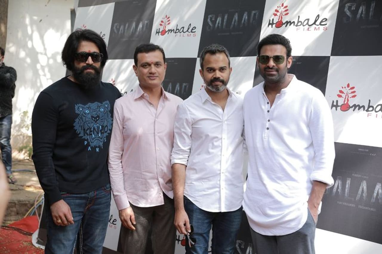 Prabhas, director Prashanth Neel and Vijay Kiragandur of Hombale Films, who is bankrolling the big-budget action drama, were also in attendance. KGF star Yash also took part in the launch event.