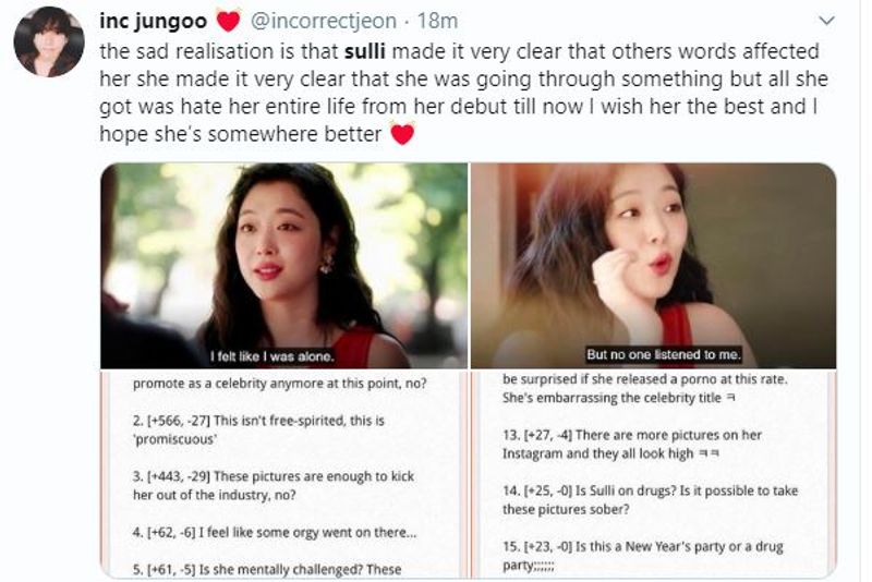 It is said that she was undergoing depression following online bashing. Twitterati expressed concern and started posting pictures of Sulli with a message: how many more deaths before this online bashing stops.