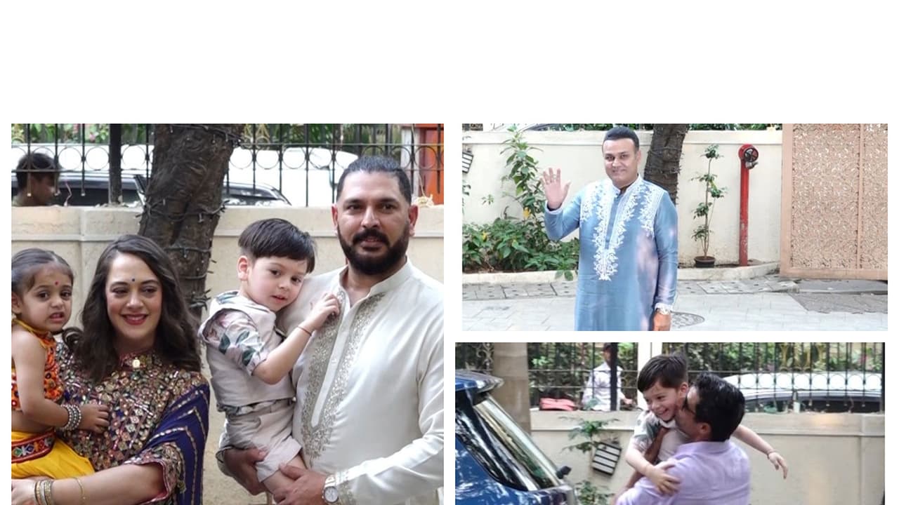 Former cricketer Yuvraj Singh attended the wedding with his wife, Hazel Keech, and their children, all dressed in traditional attire. Yuvraj and former pacer Ashish Nehra arrived at the same time. Seeing Yuvraj's children, Nehra was visibly thrilled. He picked up Yuvraj's son in his arms and cuddled him warmly. Veteran batter Virender Sehwag also marked his presence. He was seen dressed in a blue kurta paired with white pyjamas.