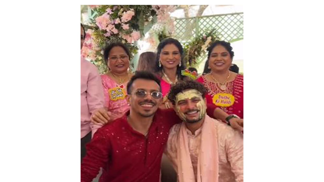 On Friday evening, leg spinner Yuzvendra Chahal shared an adorable video from Kuldeep and Vanshika's haldi ceremony. In the clip, he can be seen applying haldi to the couple and posing with them for pictures. See video here View this post on Instagram A post shared by Yuzvendra Chahal (@yuzi_chahal23) "Mere Yaar Ki Shaadi haiiiiii," he captioned the post.