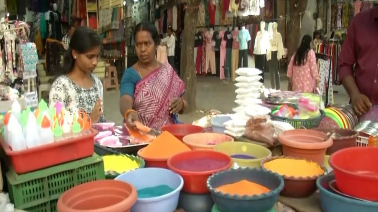 Ahead of Makar Sankranti, Hyderabad markets are bustling with shoppers buying Rangoli colours, Muggu powder, and decorative items. Shopkeepers are experiencing good business, catering to high demand with a variety of colours and traditional items.