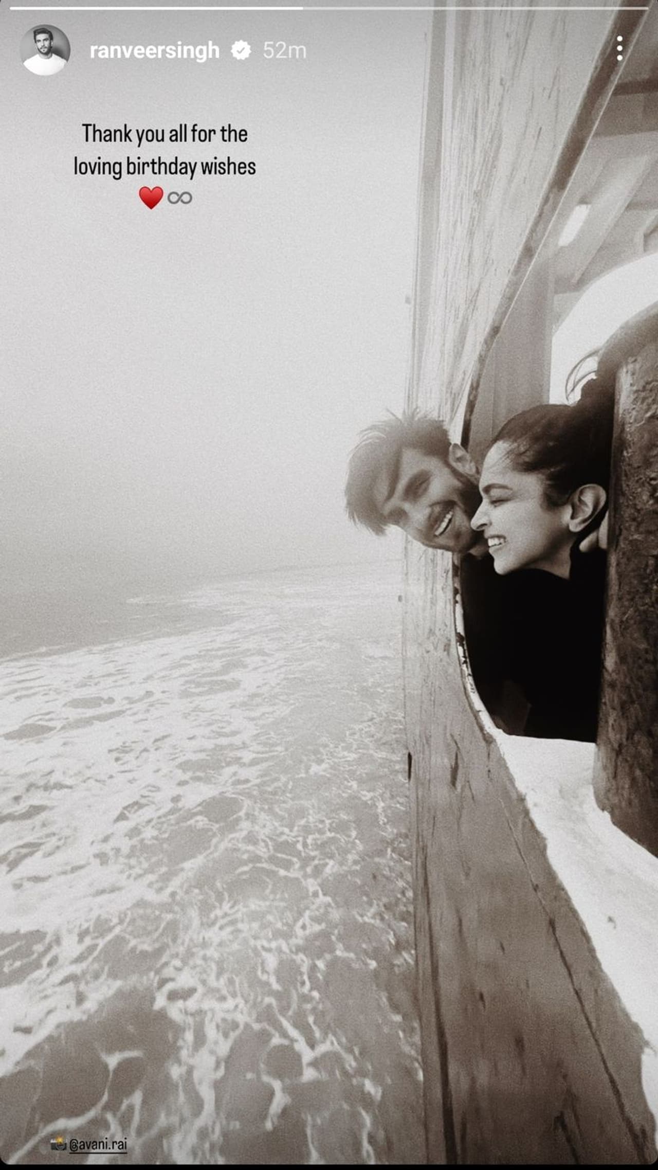 Meanwhile, on Sunday, Ranveer took to his Instagram story and shared a black-and-white picture with his wife. The couple looked all things cute in it. Along with the picture, he wrote, "Thank you all for the loving birthday wishes."