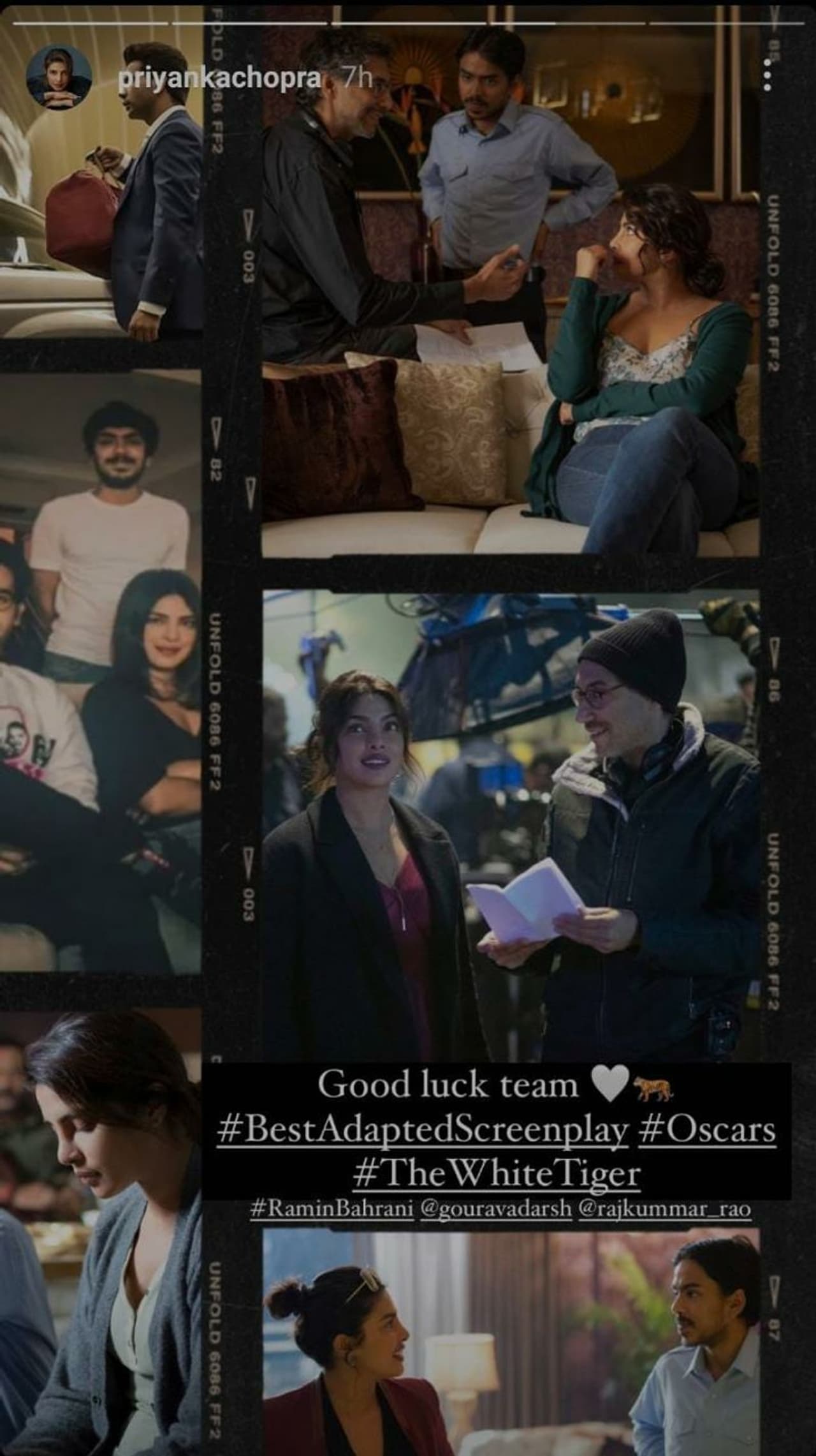 Priyanka Chopra produced and starred in the Netflix film, 'The White Tiger' which got nominated for the Best Screenplay in Oscars 2021; here's how the actress wished her team.