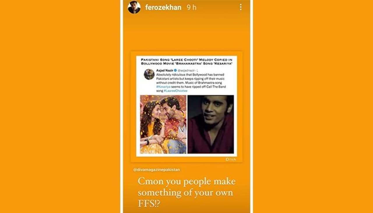 Amidst these allegations, Pakistani actor Feroze Khan has criticised the Hindi film industry. Taking to Instagram, the actor asked Bollywood to create something of their own. Sharing a post that alleged ‘Kesariya’ to be a copy of ‘Laaree Chootee’, Khan wrote: Cmon you people make something of your own FFS!?”
