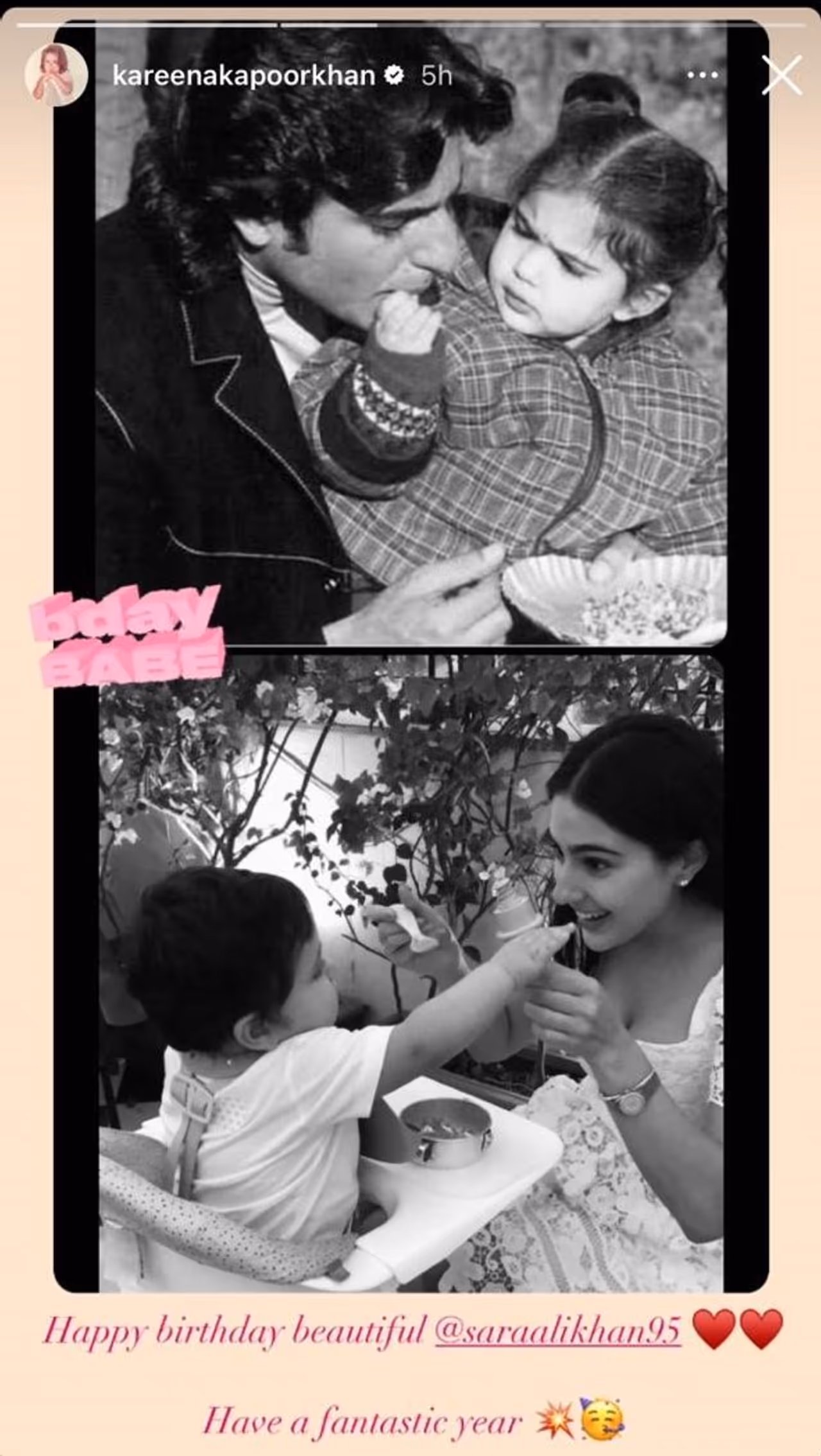 The video was captioned, “Yeh ladki kisi se bhi nahi darti, except for her birthday cake” (This girl is not scared of anyone except her own birthday cake)." Kareena Kapoor Khan also shared sweet throwback photos of Sara with Saif Ali Khan. In the photos, baby Sara was trying to feed something to her dad Saif. In another photo, Kareena and Saif’s son Jeh could be seen feeding Sara. She wished Sara to “have a fantastic year".