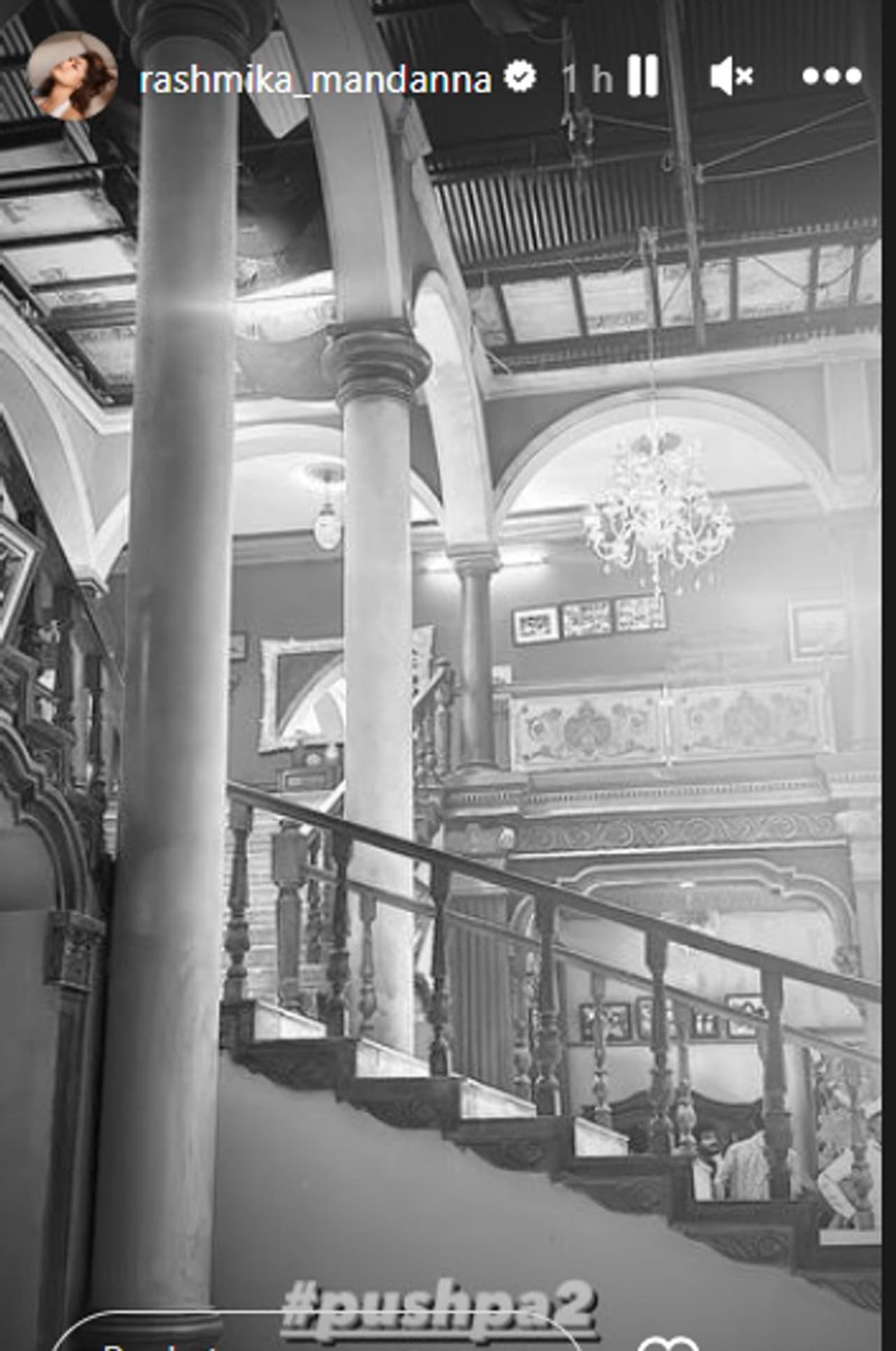 Rashmika Mandanna has shared a picture from the sets of "Pushpa 2: The Rule" which transports the audiences into a world that is going to be massier and grandeur and will give an insight into the canvas of the film. Taking to social media, the beautiful actress shared the picture with the caption which says, "#pushpa2🖤"