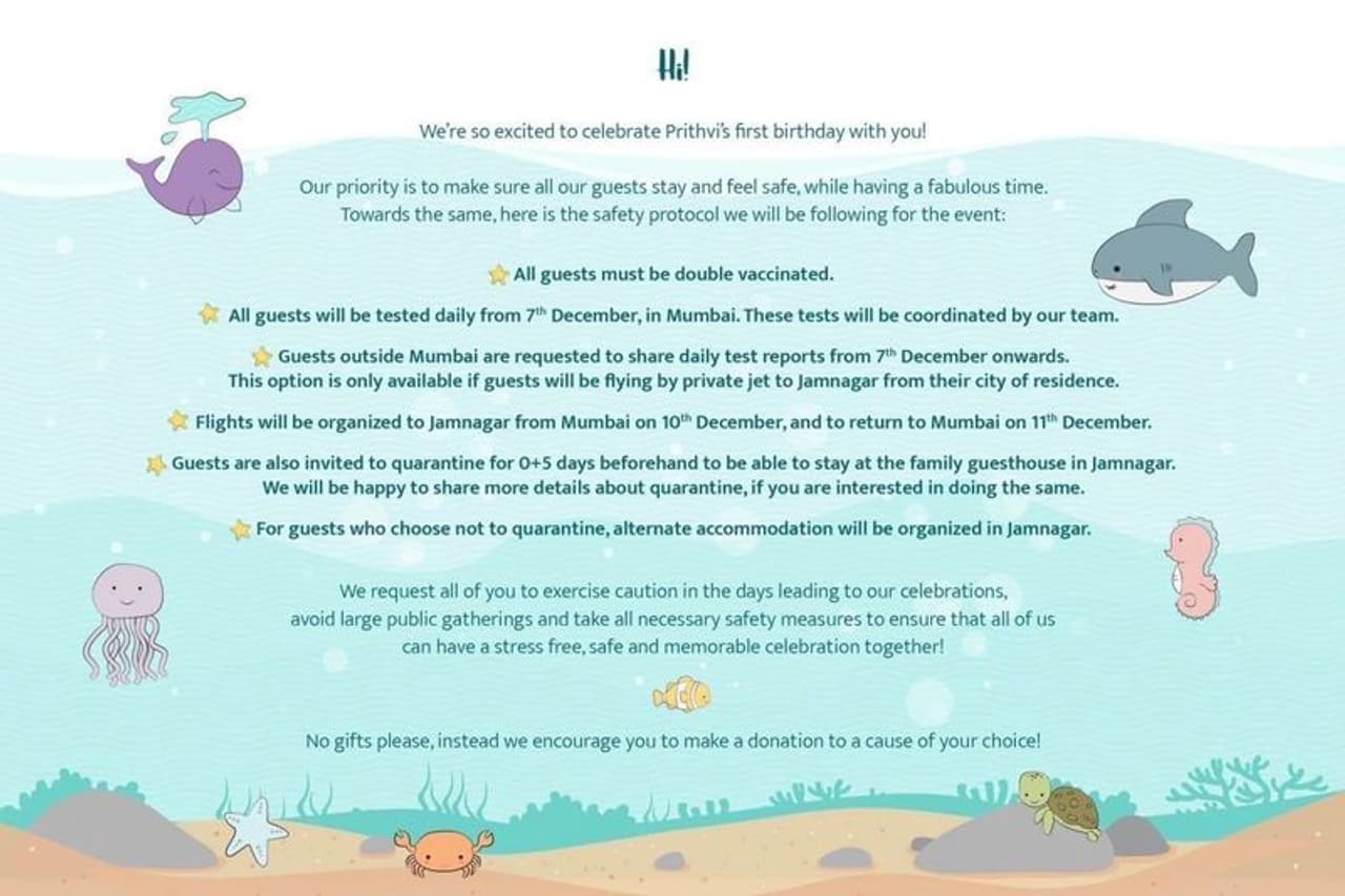 According to the birthday party card invitation that went viral on social media, Ambanis' guests should be double vaccinated and get tested daily from Dec 7 to Dec 10th. The family have an entire team to look after the Covid 19 protocols.