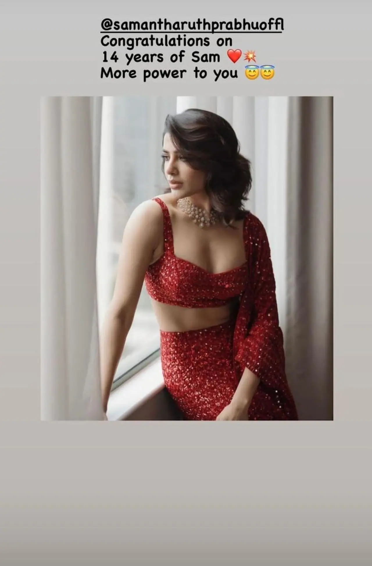 One such notable congratulatory message came from fellow actress Nayanthara, who took to her Instagram stories to extend her warm wishes to Samantha. Addressing her as 'Sam,' Nayanthara applauded Samantha's journey and wished her continued success in the years to come.