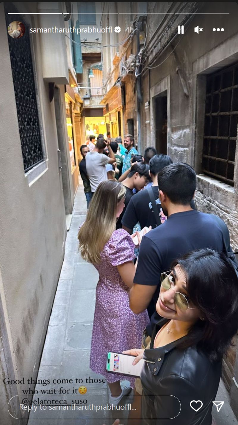 Actress Samantha Ruth Prabhu Shares a Candid Moment, Waiting Patiently in a Venice Queue for Gelato, and Offers Wisdom: "Good things come to those who wait."