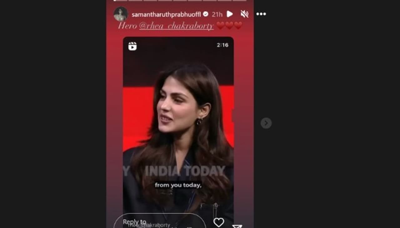 Rhea Chakraborty recently shared a video where she spoke about how she tackled a tough time back in 2020. Samantha re-shared the video and called her ‘Hero’.