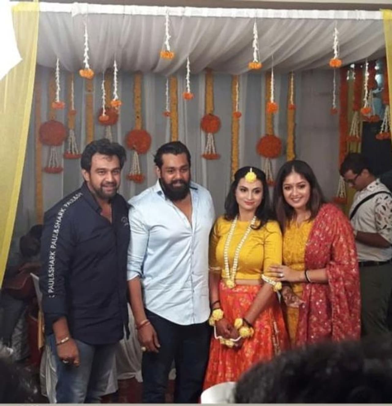 Wedding festivities began in the Sarja household on Friday. The evening saw the actor's friends from the industry join the couple at the mehendi, followed by the ‘arishina shastra’ on Saturday.