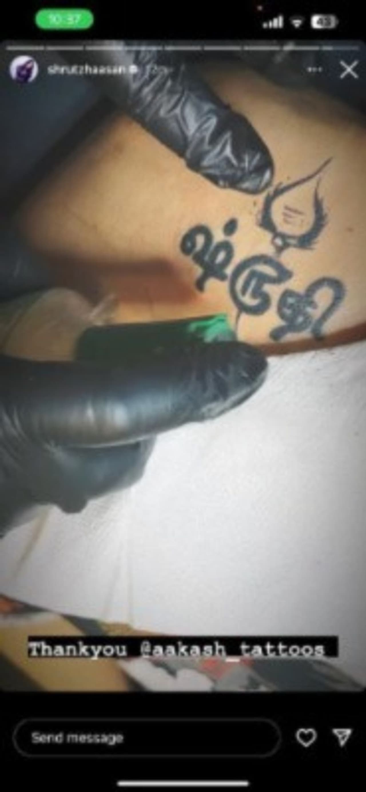 Actress and musician Shruti Haasan added another tattoo to her collection depicting Lord Murugan's Vel and her name in Tamil. Shruti Haasan, who has always been renowned for her sense of style, has had numerous tattoos. This new tattoo reflects her religious values and love of herself, making it meaningful to her.
