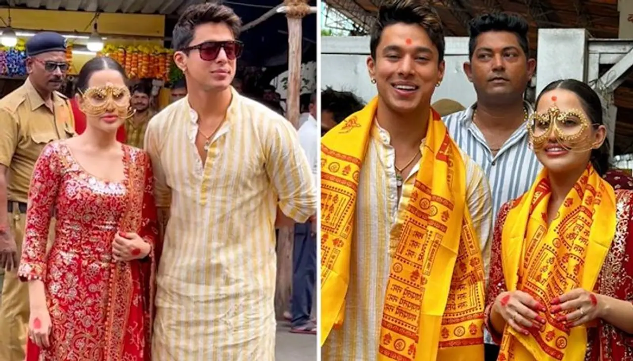 Aside from her attire, she is known for her varied spottings. On the eve of Ganesh Chaturthi, Urfi Javed went to Mumbai's Siddhivinayak temple with Pratik Sehajpal. Several of the couple's images and videos became popular on social media. Pratik kept things elegant in a striped yellow kurta, while Urfi looked stunning in traditional red.
