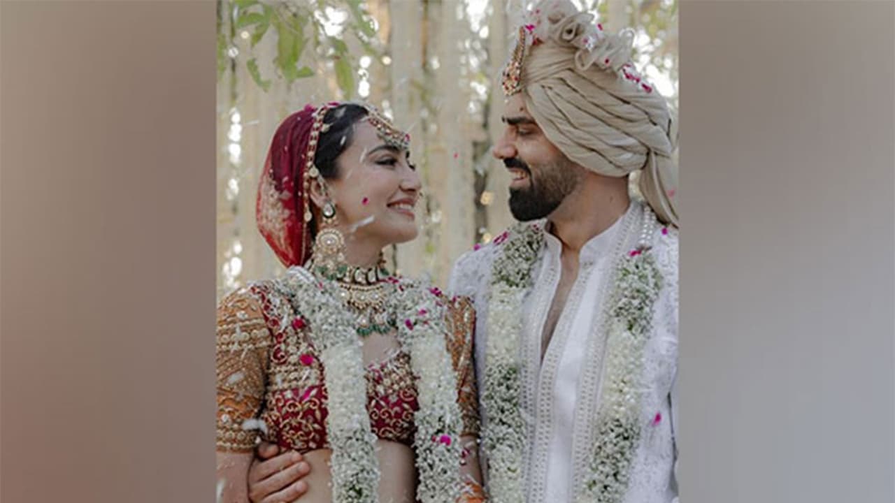 On her wedding day, Surbhi looked stunning in a traditional red lehenga and completed her look with elaborate gold jewellery, while Sumit complemented her well in a white ethnic ensemble. The wedding ceremony was held at Aahana Luxury Resort in Jim Corbett, Uttarakhand. (ANI)