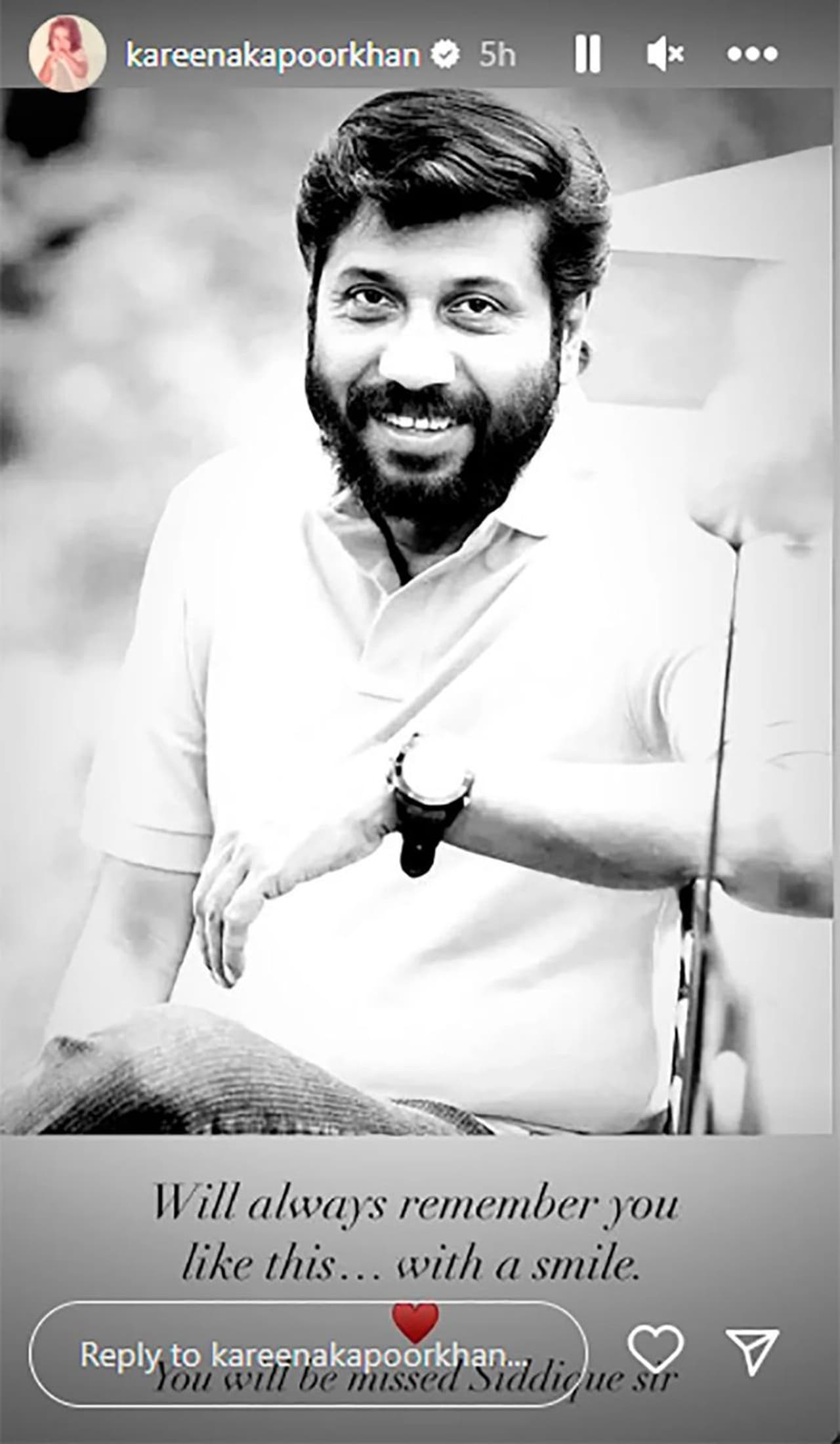 Actor Surya visited director Siddique’s family in Kochi and extended condolences. Several other prominent Indian actors, directors and others posted heartfelt notes on his demise. Kareena Kapoor's touching message for Siddique was notable. Mammootty, Dulquer Salmaan, Prithviraj Sukumaran, and other stars expressed respect to the late filmmaker on social media, as did the actress, who collaborated with him in the 2011 film Bodyguard starring Salman Khan. "Will always remember you like this... with a smile. You will be missed Siddique Sir." she wrote.