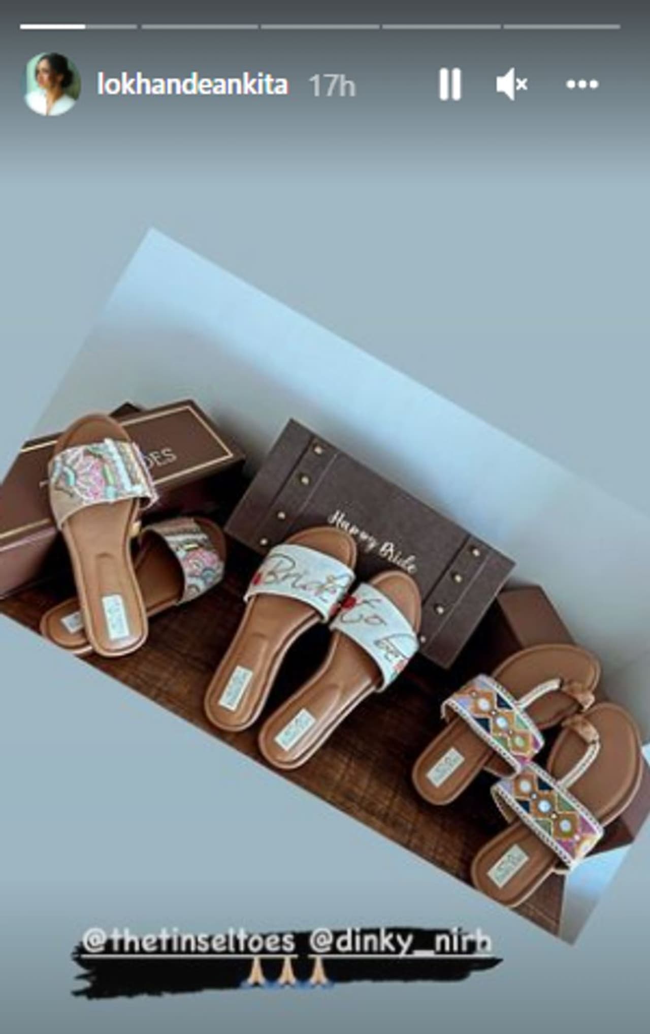 Taking to her social media handle, the actress had posted photos of the gifts she had got. In one of the stories she had posted photo of a pair of shoes that was gifted to her. One of them was a slider that had the word 'bride-to-be embroidered over the same. The other two had designer embroidery over the same.