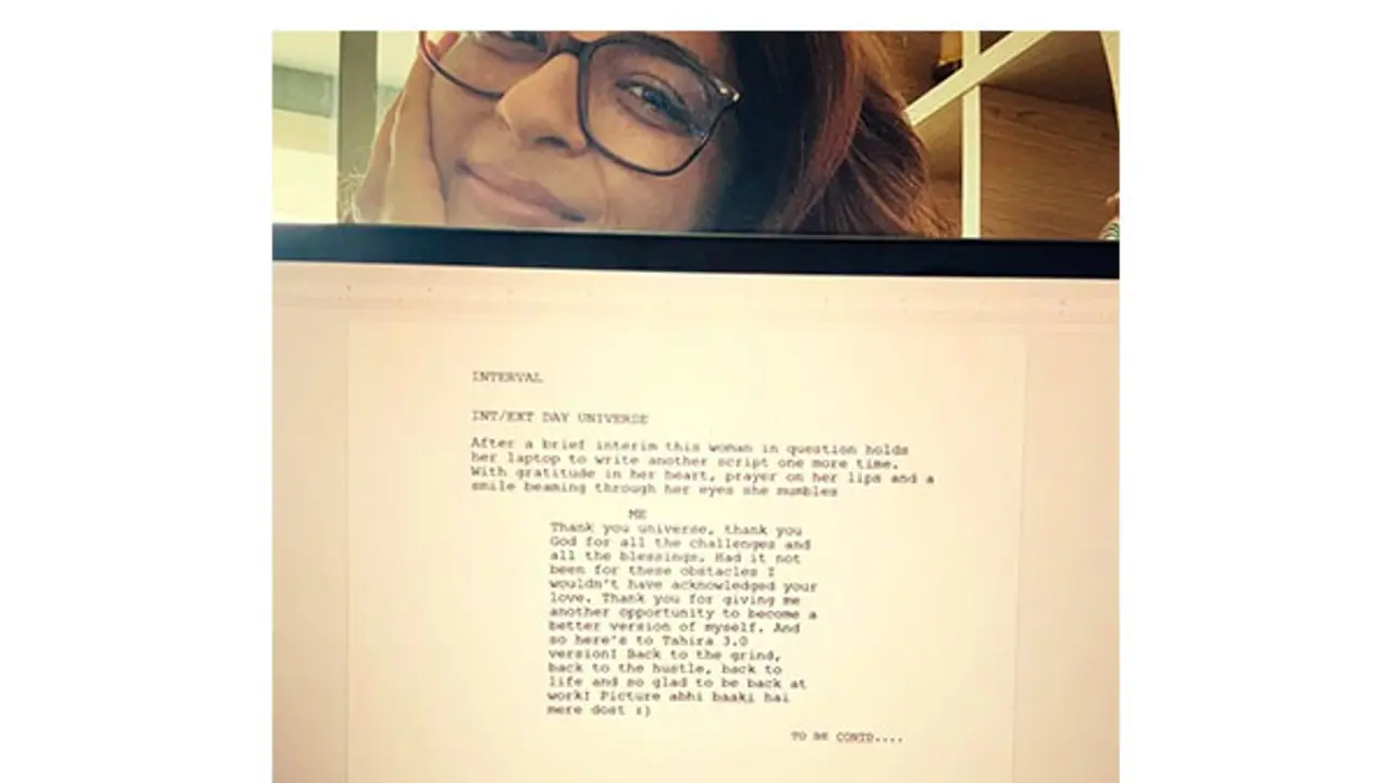 On Thursday, Tahira took to her Instagram to let everyone know that she is not giving up and is "back to work." She posted a picture of her laptop screen with a note written in a script format.