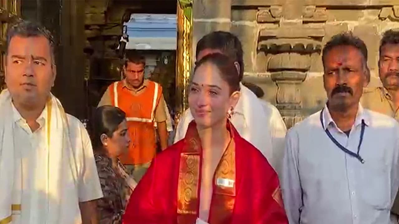 Actress Tamannaah Bhatia visited Sri Venkateswara Swamy Temple in Tirumala on Sunday morning and offered prayers. Donned in traditional attire, Tamannaah sought the blessings of Lord Venkateswara.