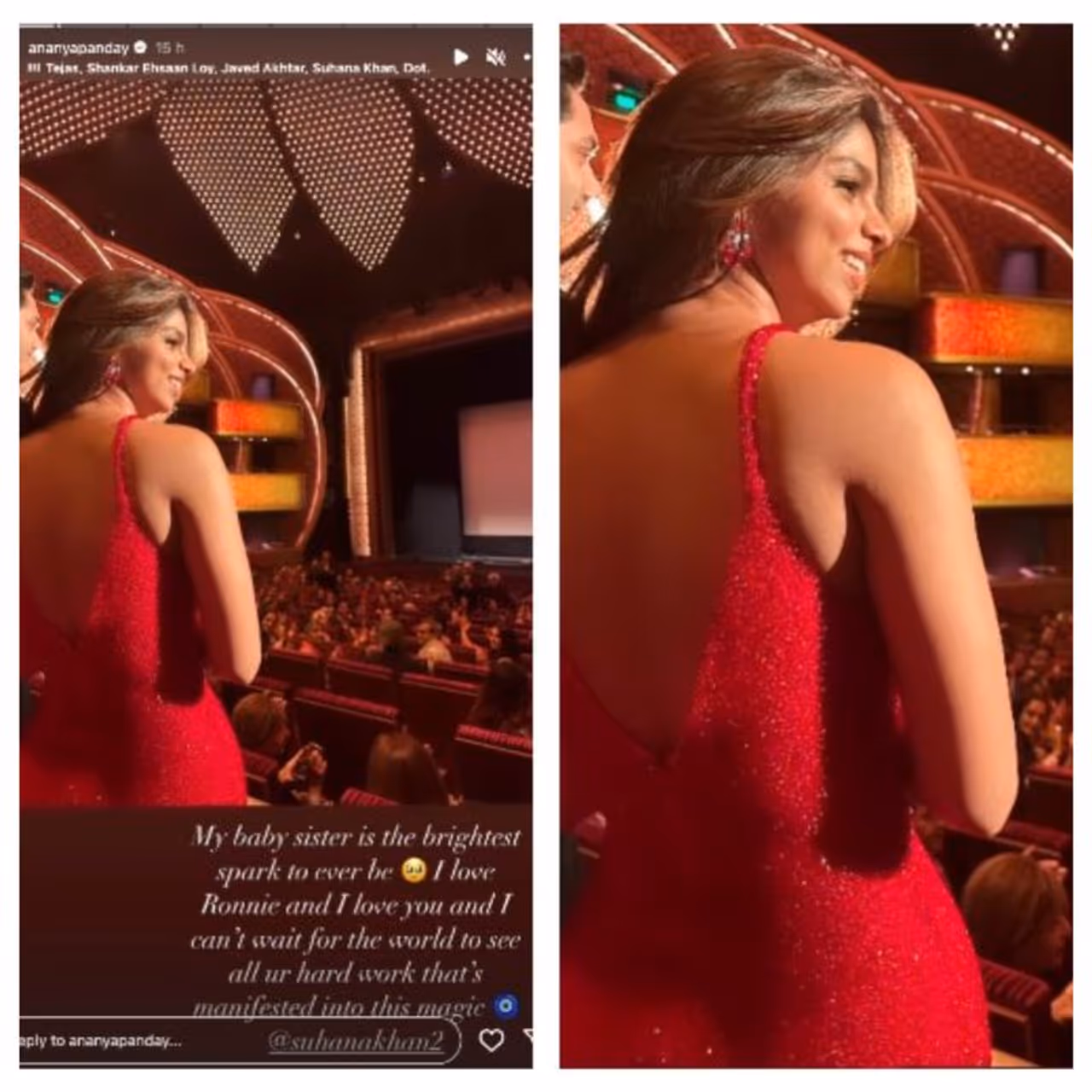 Ananya's Instagram story not only showcased the duo's deep bond but also conveyed the actress's affectionate words, "My baby sister is the brightest spark to ever be. I love Ronnie, and I love you, and I can't wait for the world to see all your hard work that's manifested into this magic @suhanakhan2."