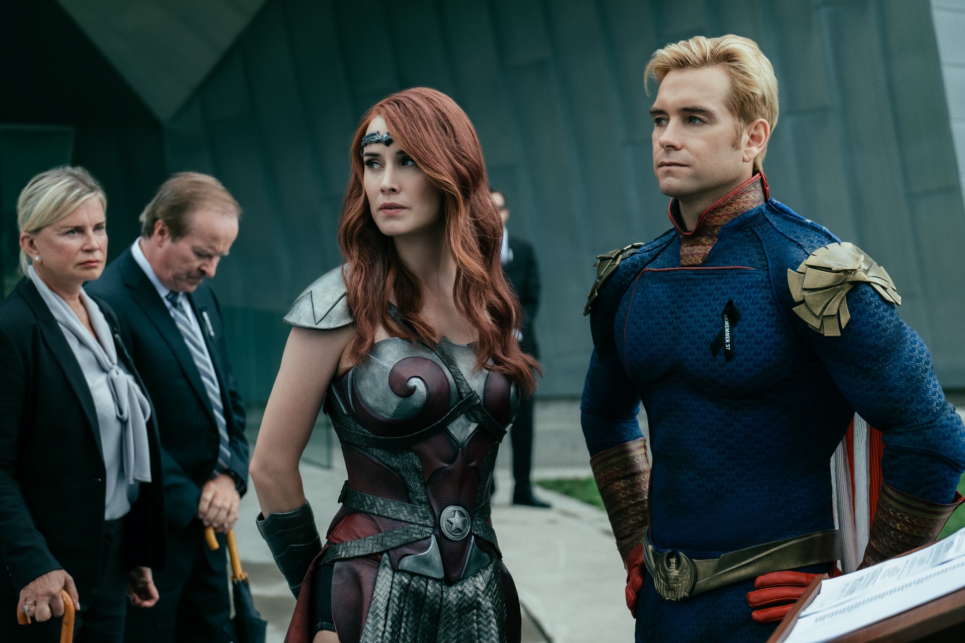 The Supes of The Seven also include Queen Maeve (Dominique McElligott), A-Train (Jessie T. Usher), The Deep (Chace Crawford) and Black Noir (Nathan Mitchell). Recurring stars in season two include Claudia Doumit, Goran Visnijc, Malcolm Barrett, Colby Minifie, Shantel VanSanten, Cameron Crovetti, PJ Byrne, Laila Robbins and Giancarlo Esposito returning as Vought boss Stan Edgar, among others.
