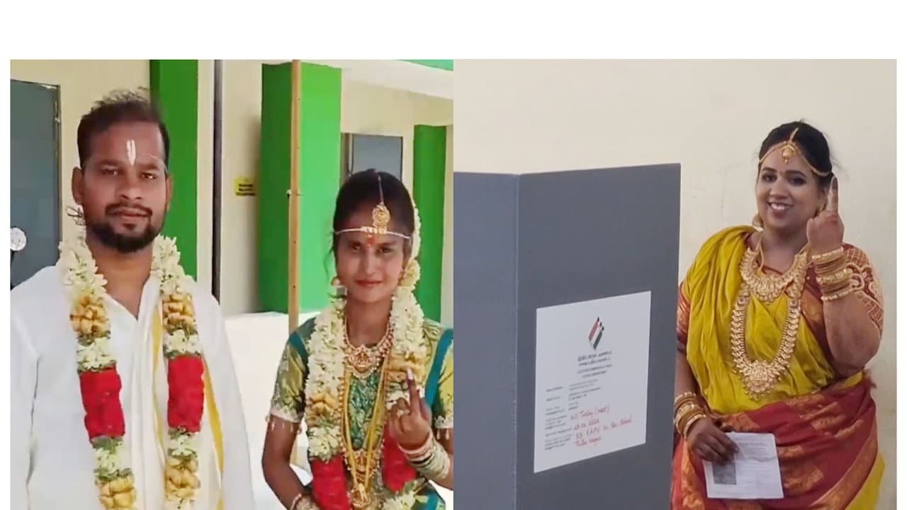 Amid high voter turnout for the Tamil Nadu assembly elections, two newly married couples, one in Tirupathur and another in Tiruchirappalli, arrived at polling booths in their wedding attire to cast their votes and fulfil their democratic duty.