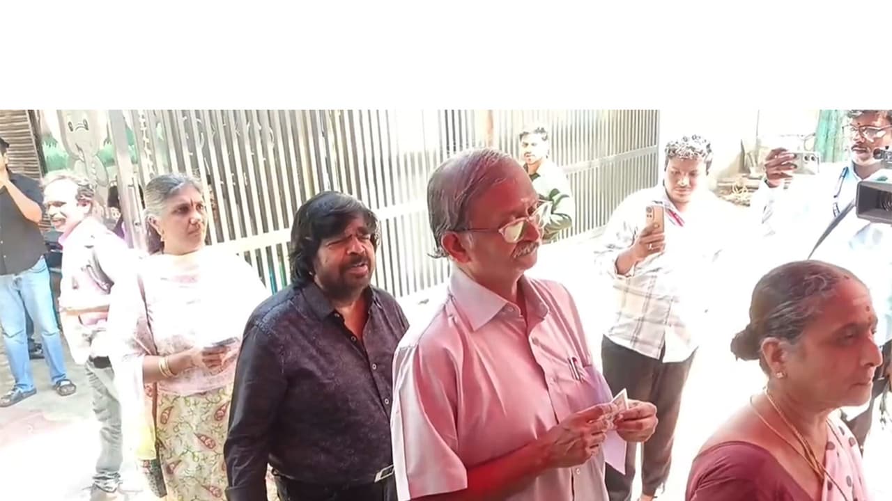 Demonstrating civic responsibility, T. Rajendar chose to wait in the long queue alongside the general public to await his turn to cast a vote. His presence in the queue drew attention from fellow voters as he participated in the electoral process in the same manner as every other citizen.