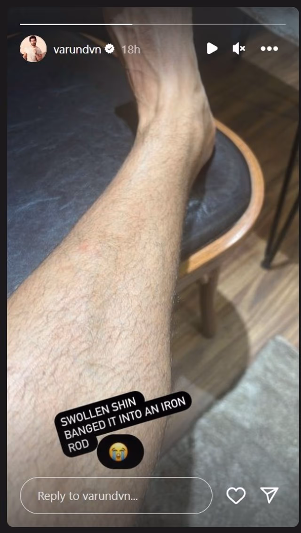 Varun Dhawan took to his Instagram stories to post a photo of his swollen leg, covered in red marks, resting on a chair.