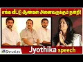 Jyothika was speaking at the audio launch of her new movie Magalir Mattum She was expressing her disappointment over the kind of roles being offered to women Her speech had an instant reaction from Suriya, read what he had to say