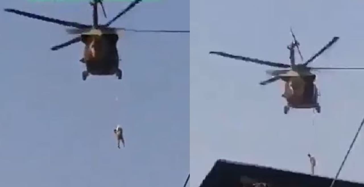 A short video clip of a man 'hanging' from a helicopter went viral on social media with news channels and multiple users picking it up and claiming the Taliban executing a man in Afghanistan.